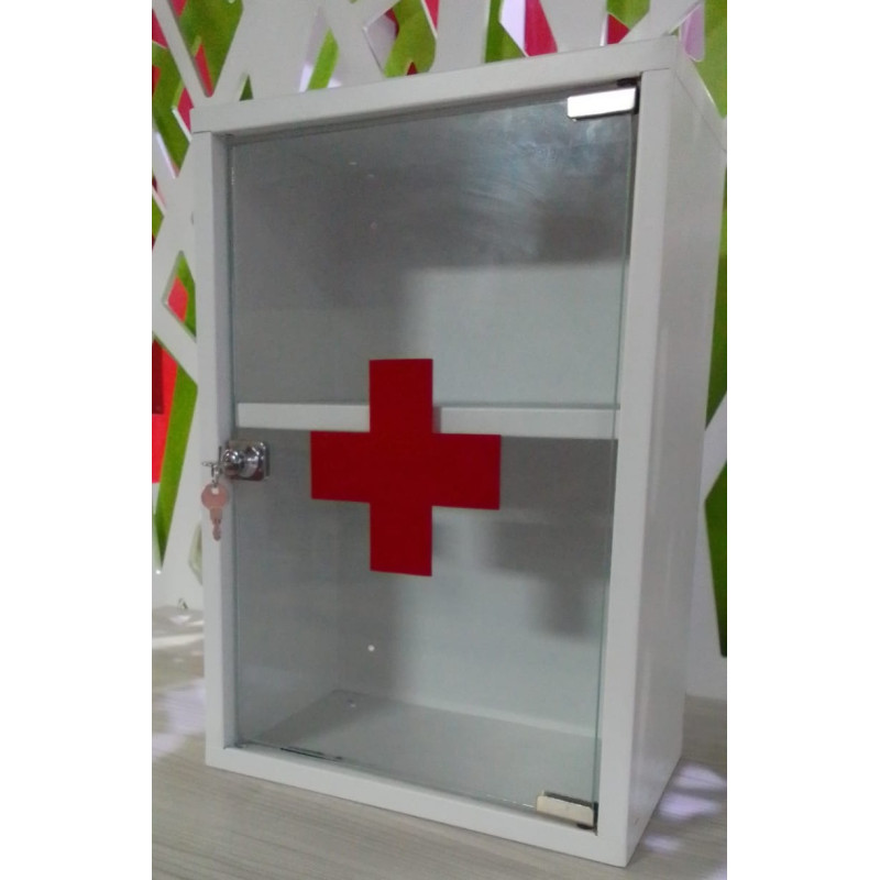 Botiquín para primeros auxilios  de metal con puerta de vidrio