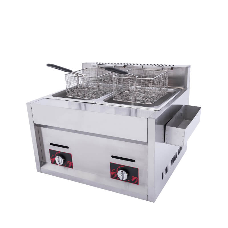 Freidora comercial, freidora de gas doble canasta de 12 L, acero inoxidable completo