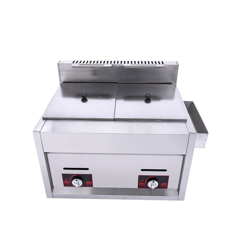 Freidora doble canasta a gas, estructura de acero inoxidable completo. Con cesta para restaurante comercial, comidas casera.